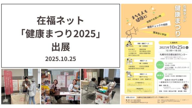 「介護が必要になる前に知っておこうセミナー」(不定期)、福祉や介護に気付いたら触れちゃっている「あえりあマルシェ」(年1回)などの主催イベントや、他団体とのコラボ企画を開催しています。