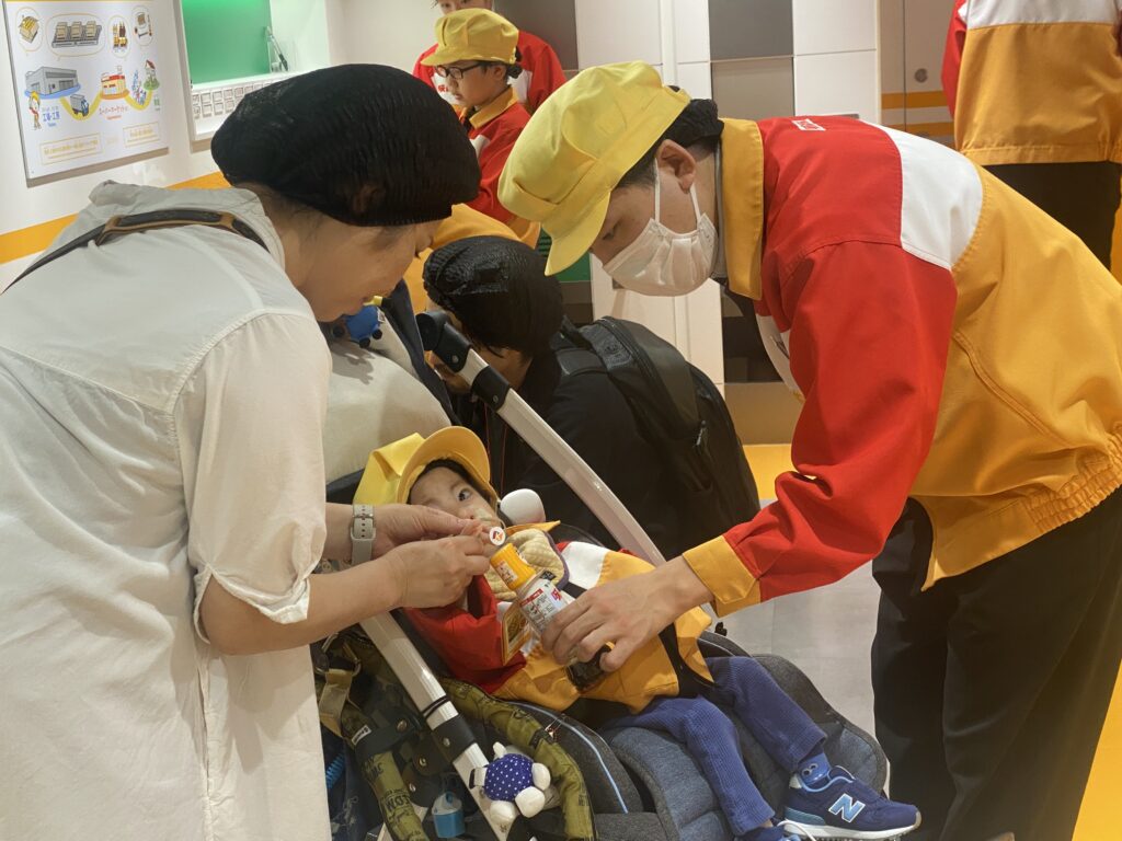 キッザニアでは当たり前なのかもしれませんが、ちゃんと子どもに向けて話したり受け渡しをしてくれます。