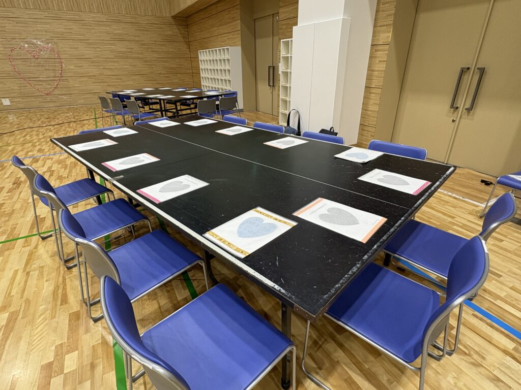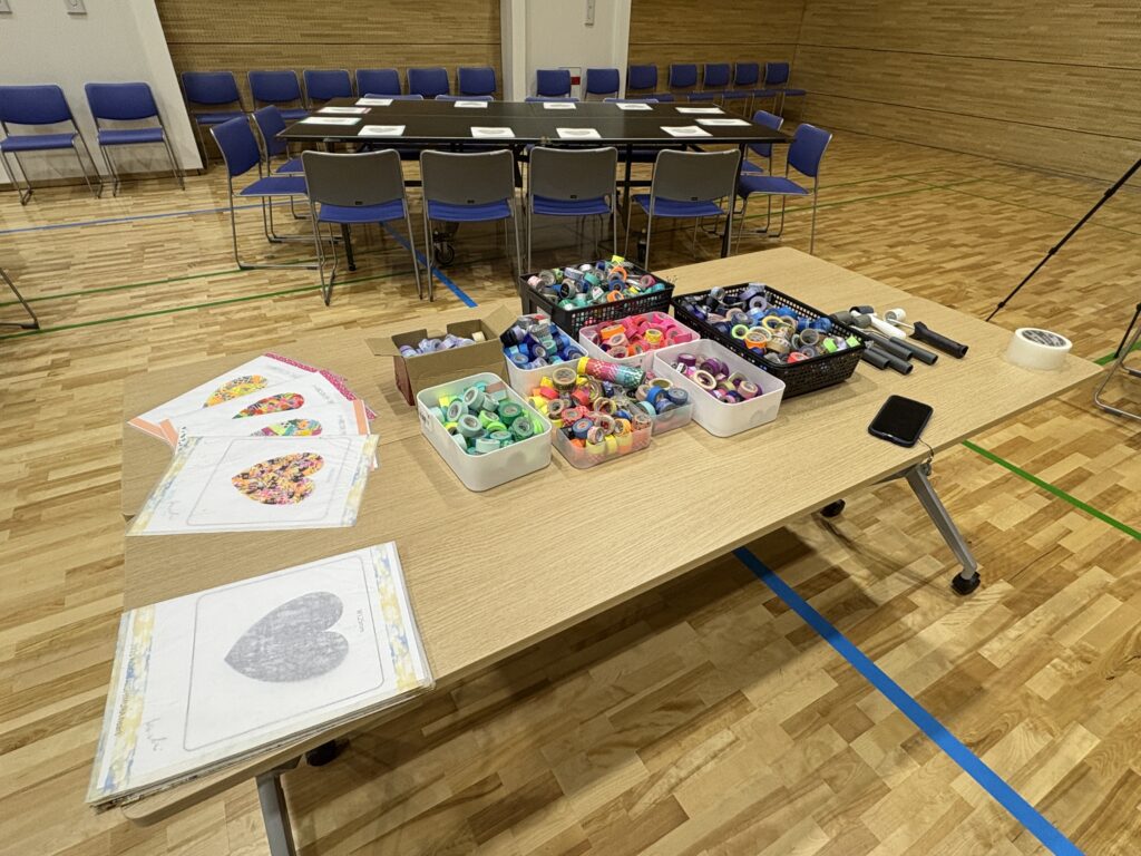 会場の半分は、マスキングテープを使ってハートをつくるセッティング。