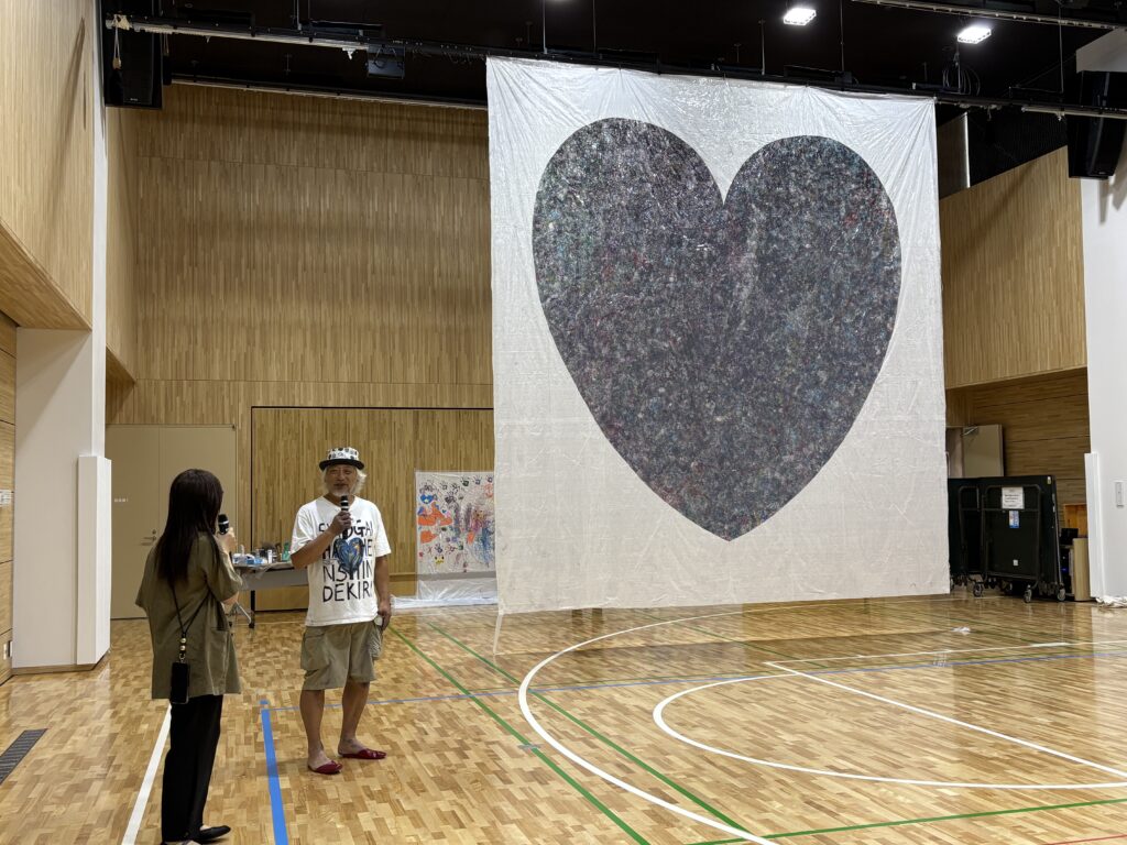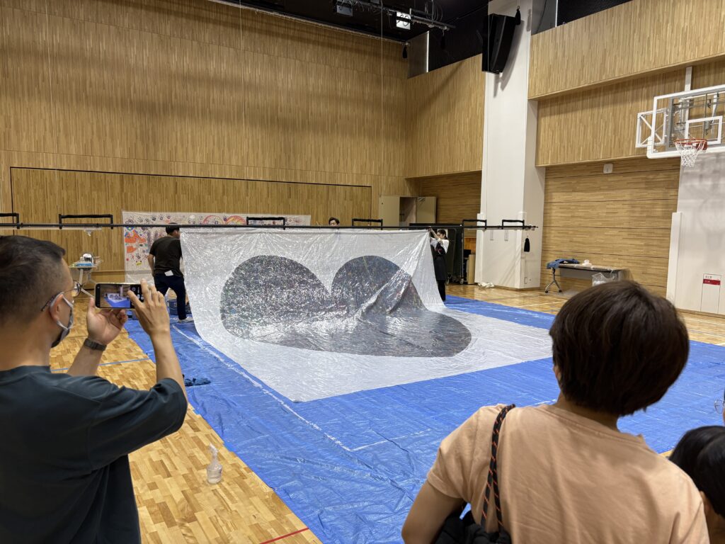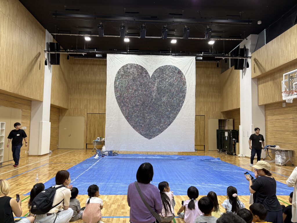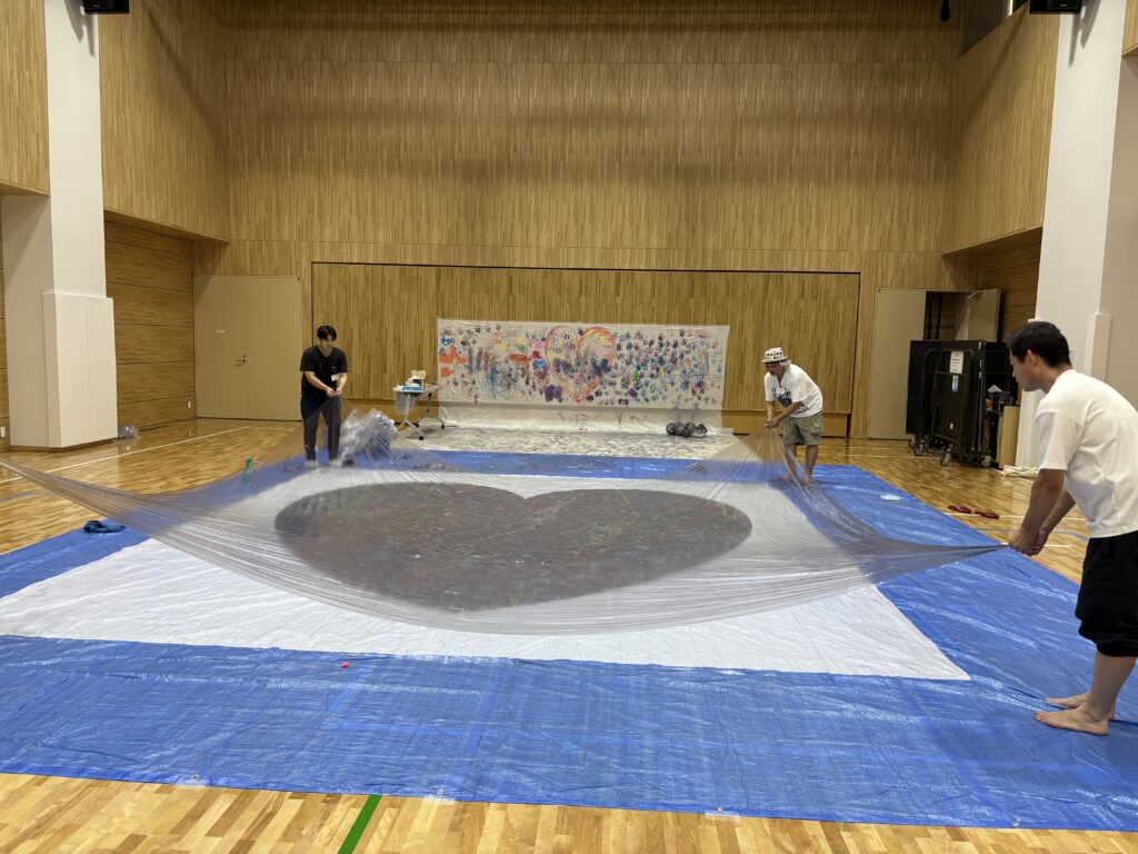 みんなでボールを転がした作品は、実は白いシートが2枚重ねになっており、ハートの型抜きした上層の1枚をはがすと、、、