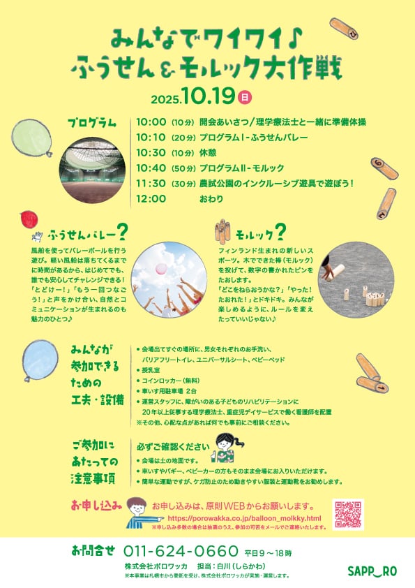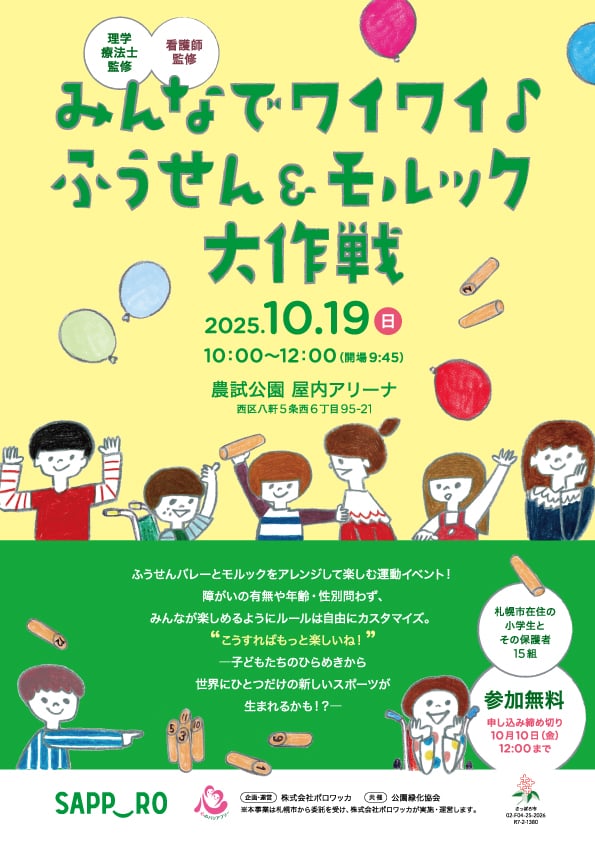 NPO法人あえりあは、株式会社ポロワッカ様が企画・運営する「みんなでワイワイ♪ふうせん&モルック大作戦」に、インクルーシブ視点のアドバイザーとして、関わらせていただいております。